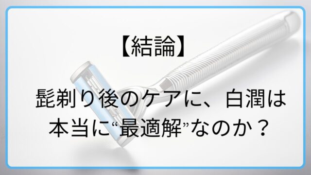 白潤 【結論】髭剃り後のケアに、白潤は本当に“最適解”なのか? 2025年9月28日 mashino3771 https://mashinoblog.com/wp-content/uploads/2025/04/Mashino_s_Blog-removebg-preview-e1746013225674.png Mashino's Blog https://mashinoblog.com/1164/ 肌野ゆうき 白潤が、髭剃り後の肌に良い成分が入ってるってことは、 …