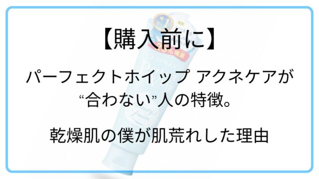 洗顔 【購入前に】パーフェクトホイップ アクネケアが“合わない”人の特徴。乾燥肌の僕が肌荒れした理由 2025年12月21日 mashino3771 肌野ゆうき ニキビに悩んでいるから、とりあえず「アクネケア(緑)」を買おうと思っているけど…これって本当に肌に優しいの? …