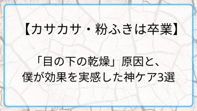 乾燥 【カサカサ・粉ふきは卒業】男子大学生の「目の下の乾燥」原因と、僕が効果を実感した神ケア3選 2025年9月5日 mashino3771 https://mashinoblog.com/wp-content/uploads/2025/04/Mashino_s_Blog-removebg-preview-e1746013225674.png Mashino's Blog 肌野ゆうき 最近、なんか顔が疲れて見えるんだよな…。特に目の下がカサカサして、笑うと細かいシワが気になる…。 Tゾーンは …