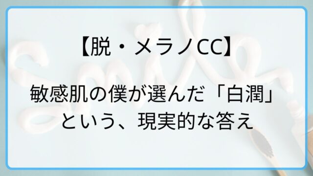 ニキビ跡 【脱・メラノCC】敏感肌の僕が選んだ「白潤(しろじゅん)」という、現実的な答え 2025年9月8日 mashino3771 https://mashinoblog.com/wp-content/uploads/2025/04/Mashino_s_Blog-removebg-preview-e1746013225674.png Mashino's Blog 肌野ゆうき メラノCCが合わないのは分かった…。でも、じゃあ僕たち敏感肌は、一体何を使えばニキビ跡のケアができるんだろう…。 …