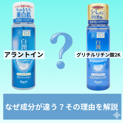 「白潤(ノーマル)」の有効成分は『トラネキサム酸』と『アラントイン』…これは覚えたよ!でも、なんで“プレミアム”の方は、『アラントイン』じゃなくて『グリチルリチン酸2K』が入ってるの?