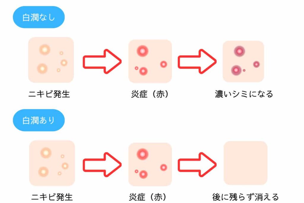 実際に、白潤と併用して使い始めてみたところ、2週間ほど経った頃に、気になっていた黒いニキビ跡の輪郭が、ほんの少しぼやけて薄くなったような感覚がありました。