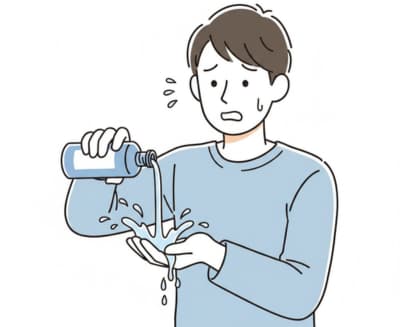 いつもの感覚(しっとりタイプを出す力加減)で、ボトルを傾けて手に出そうとした瞬間、想定以上の量が一気に出てしまったのです。