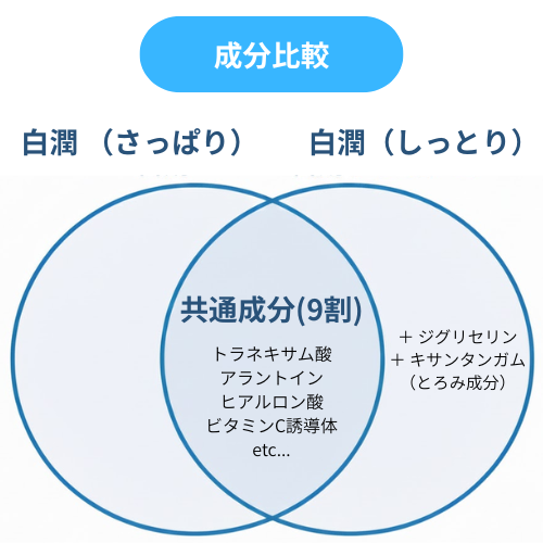 この記事では、白潤(ノーマル)の「しっとりタイプ」と「さっぱりタイプ」の違いを、成分と使用感の両面から徹底比較します。