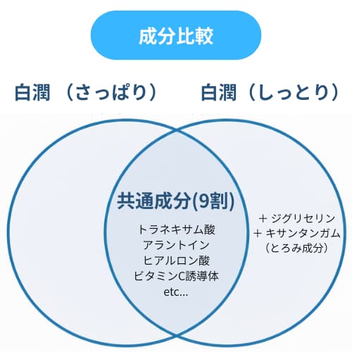 【白潤】「しっとり」と「さっぱり」どっち買う?成分と使用感の違いを徹底比較