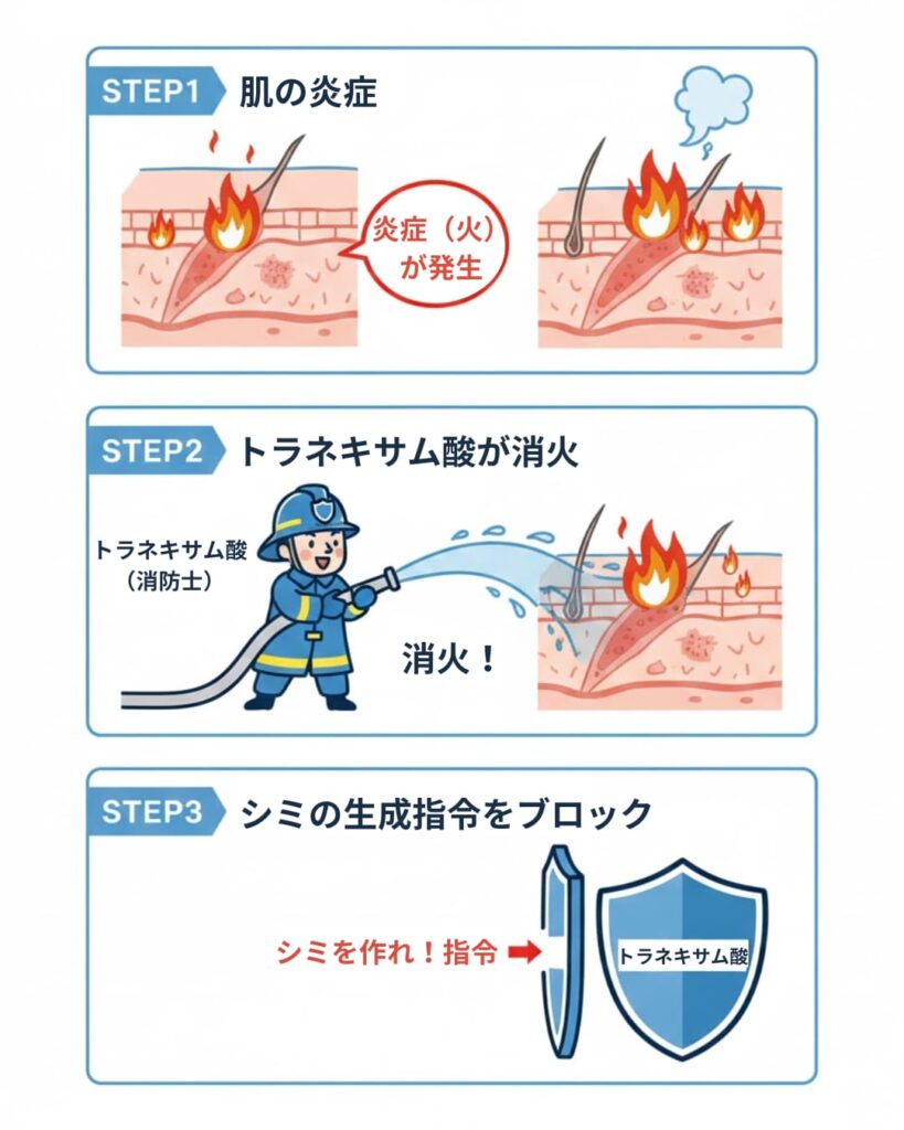 1. トラネキサム酸の“正体”:肌の「消防士」だ!