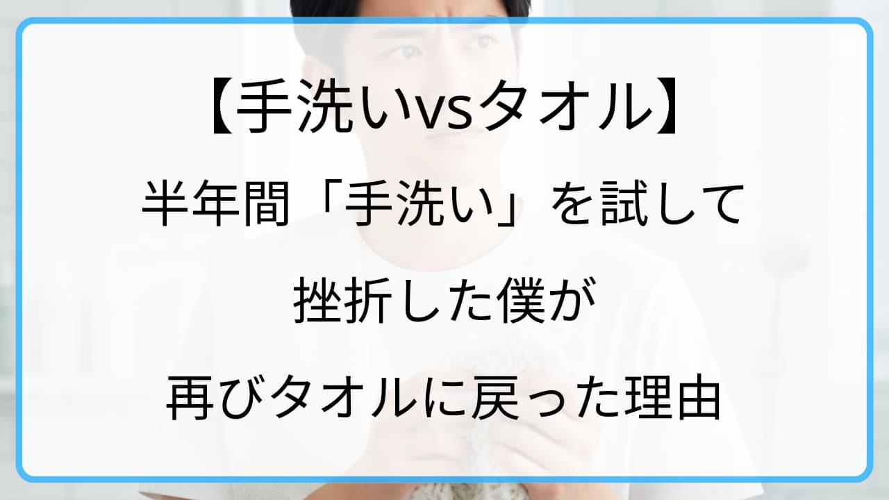 【手洗いvsタオル】半年間「手洗い」を試して挫折した僕が、再びタオルに戻った理由
